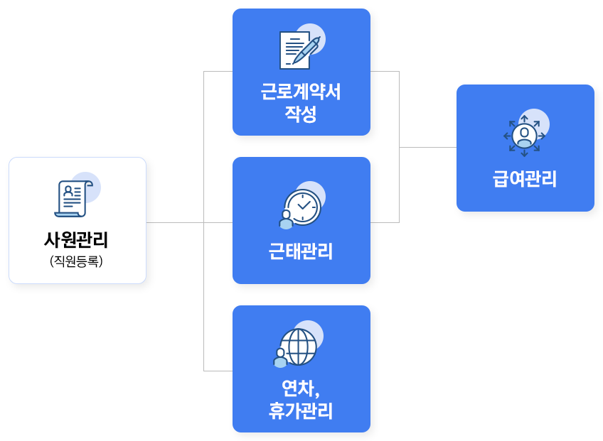 근태관리, 급여관리 등 인사노무에 관련된 모든 것을 한번에 관리할 수 있습니다.